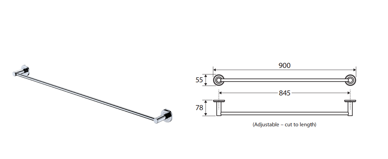 Fienza Kaya Single Towel Rail, 900mm, Brushed Nickel