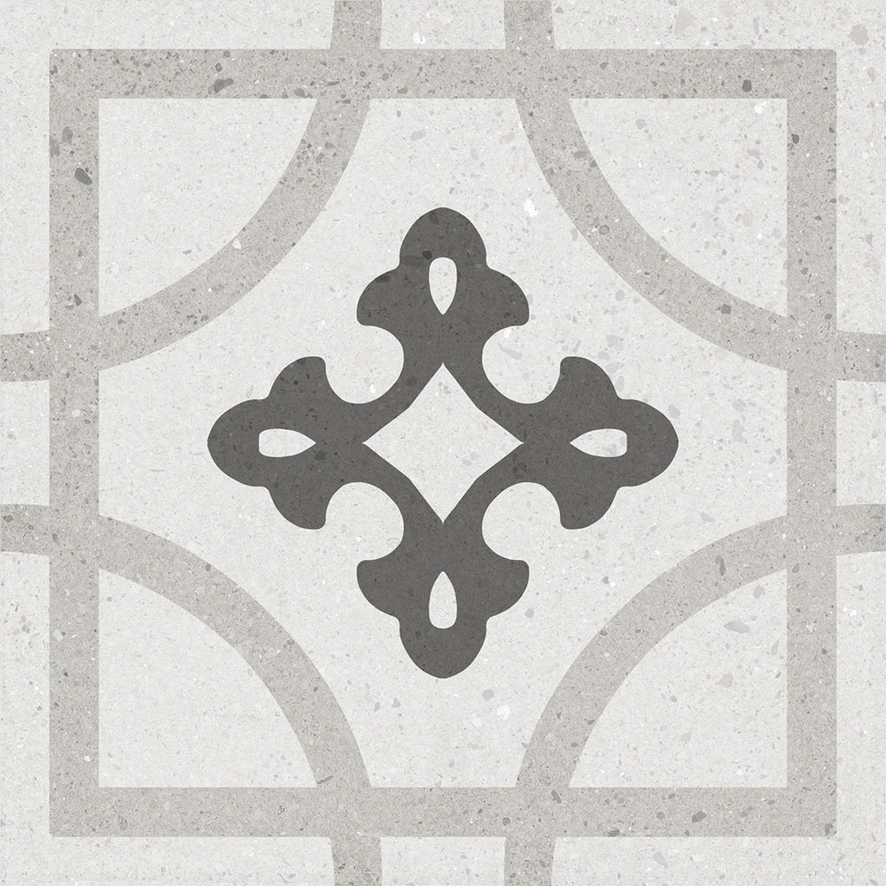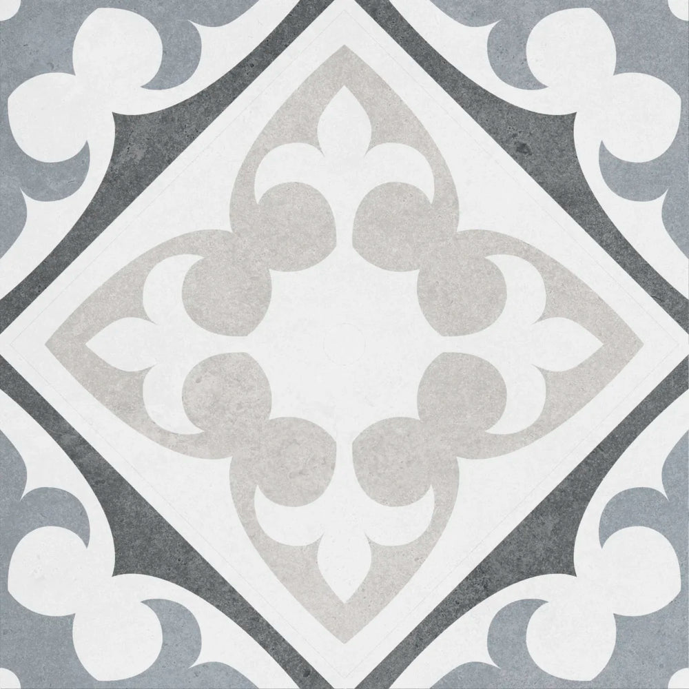 Casablanca White on Black Background Encaustic Tile 200x200mm