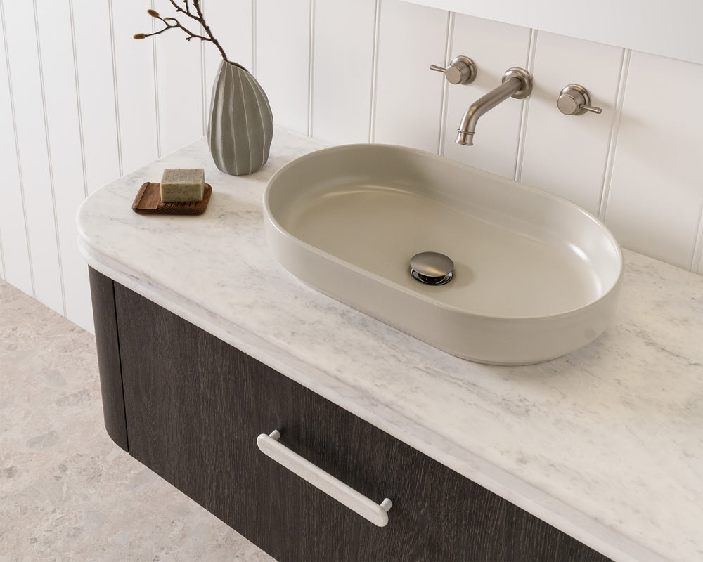 Complimentary 180mm Splashback with 80mm radius, in matching benchtop material.