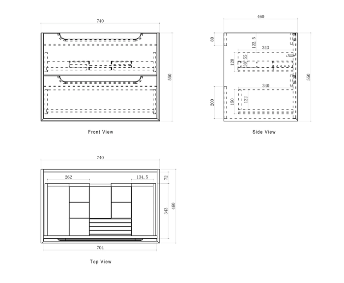 Dimensions 740x460x550mm